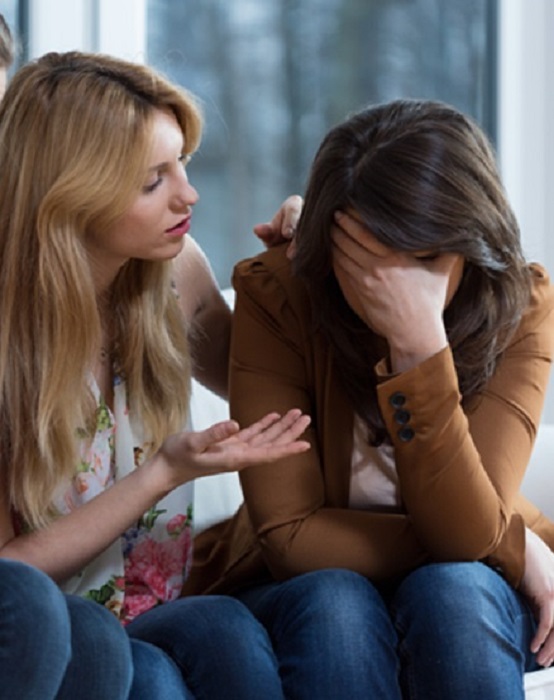 На скамейке плакали подруги
