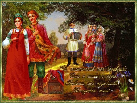 На ней шёлковый платок, юбка новая,