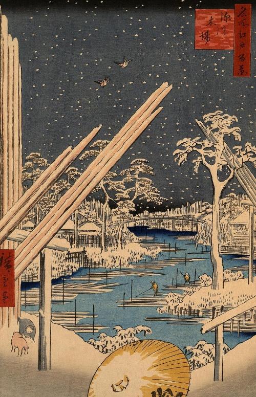 Утагава Хиросигэ. Дровяные склады в Фукагава