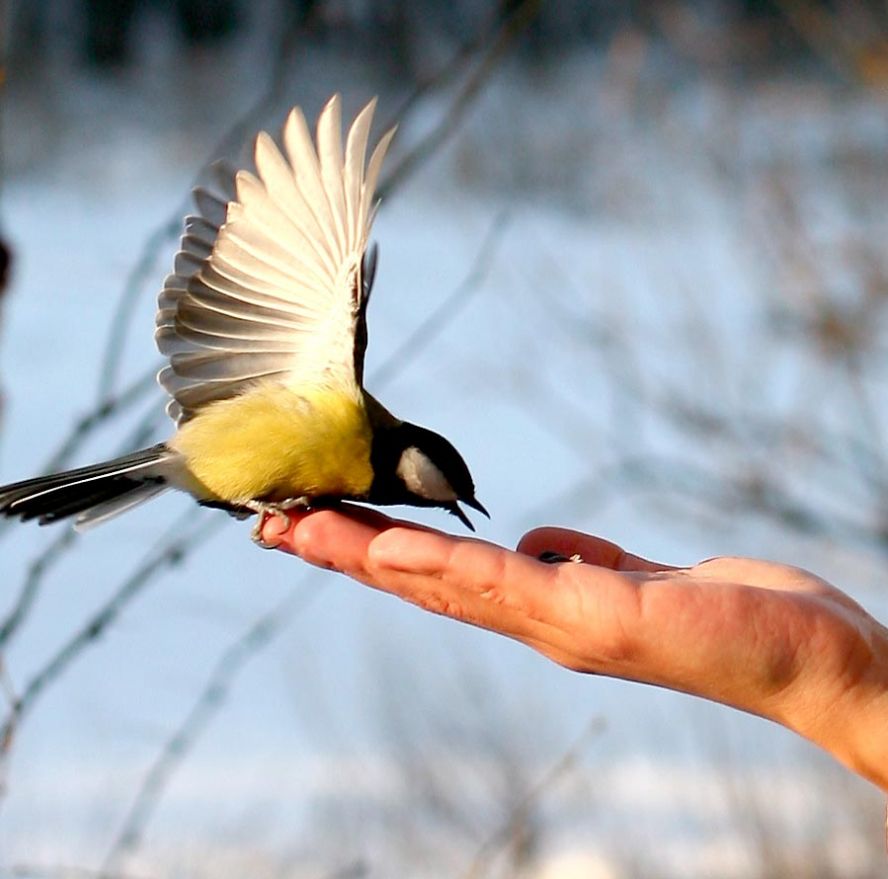 и синиц кормить с руки.