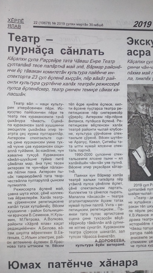 Ориентируясь на эти основы, мама сформировала новый коллектив Урмарского народного театра. Фамилии, имена.Они все работали. Репетировали. Выезжали в села со спектаклями.Бесплатными.