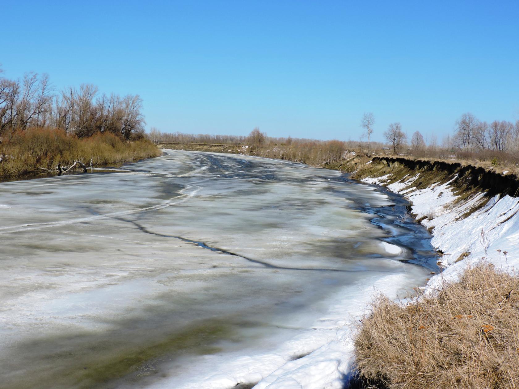 Берег обрывистый снег бережёт,