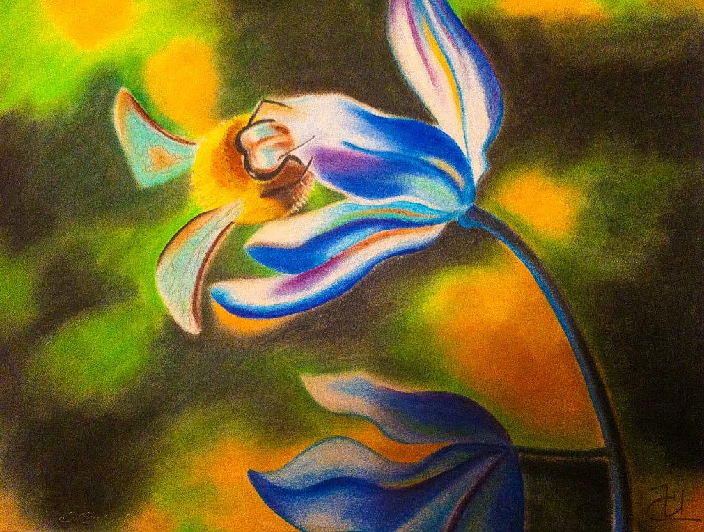 Золотистым светом.