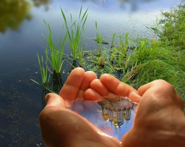 В ладонях матушка,воды мне подает.