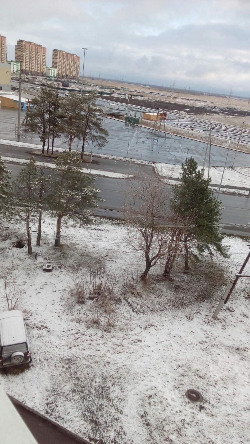 На Тюмень свалился снег.