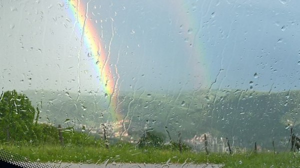 Сад, умытый тёплым ливнем,