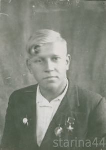 «Родился 7 мая 1924 в поселке Мисково Костромского уезда Костромской губернии (ныне Костромского района Костромской области) в крестьянской семье колхозного пчеловода. В семье было трое сыновей и две дочери. Старший сын Александр, мичман минного заградителя Балтийского флота, погиб в самом начале войны. Средний — Анатолий, старший лейтенант, командир танковой роты, сложил голову, защищая Москву.