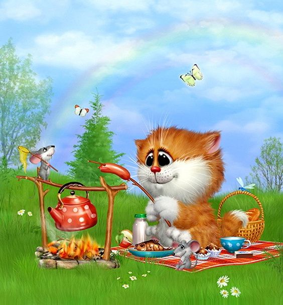 и с котом на пикнике -