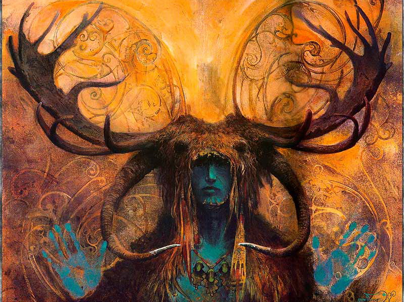 Шаман задумался. Сидит, закрыл глаза, и погрузился в мир опять какой-то.