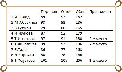 Огромная благодарность ведущей за интересный конкурс!!!