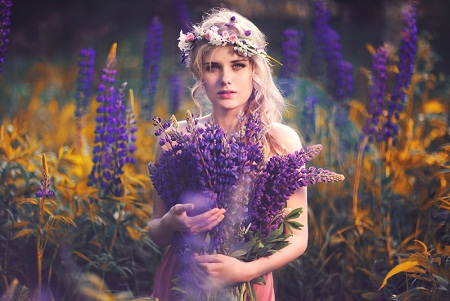 Покатилось колесом с горки лето красное!   Девкой - отнимая сон!   Ведьмой!   Златовласкою!   Тихим звоном у реки,  дымкой розовеющей...   Собирая васильки,  конопатой,  млеющей...   Заплетающей венок,   на траве лежащей,   подарившее цветок,  в платьице блестящем...   В тень забравшись отдохнуть оголив коленочки,   губки сладко облизнув у варенья с пеночкой...   У звенящего ручья,    по каменьям босою...   Чья ты,  милая?  Ничья!   "Тать" длинноволосая!   Что-то милое шепнув,   рассмеявшись весело,   синевой в глаза плеснув - Лето куралесило!