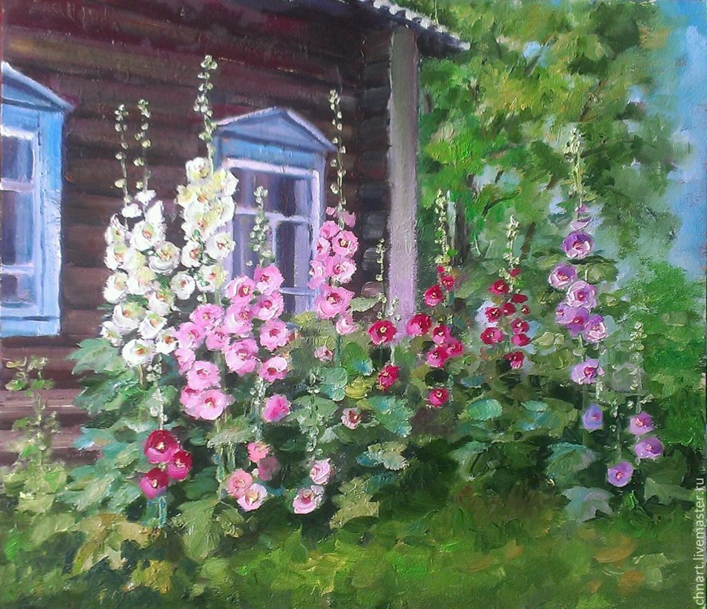 Мальва, кусты жасмина,