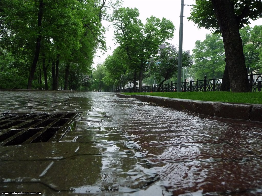 На асфальте холодные лужи.