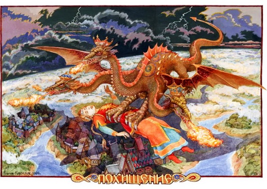 Змей могучий вылетает в Явь из тёмной Нави.