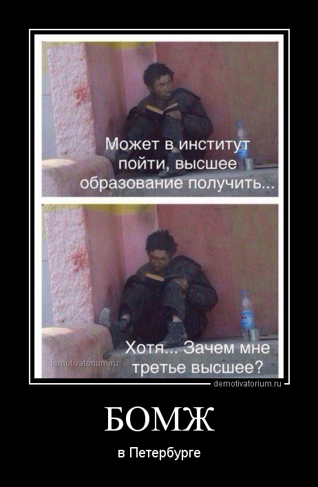 Очень часто среди бомжей встречаются вполне образованные люди и с образованиями...