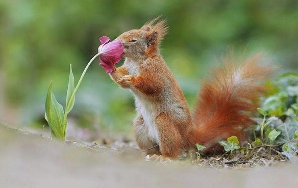 Смешно как белка тычет нос