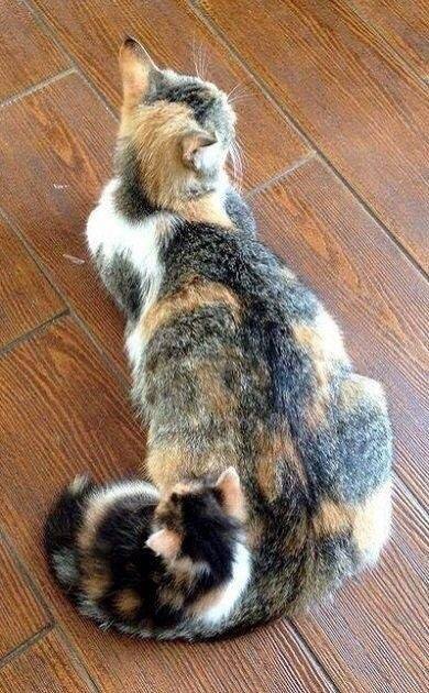 Котенок трехцветный. Трехцветная мать.