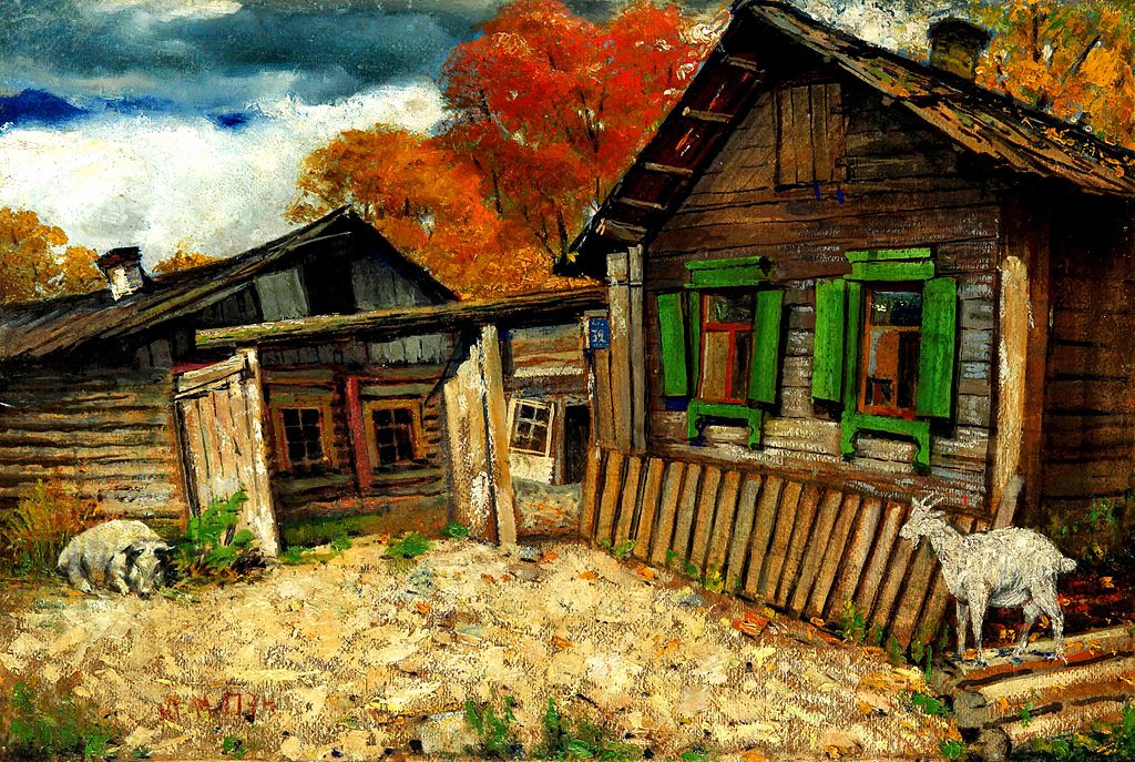 На пустыре кормясь близ стареньких построек…