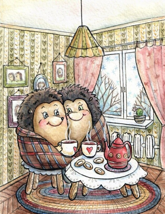 Пьёт с мёдом в своём домике чаёк.