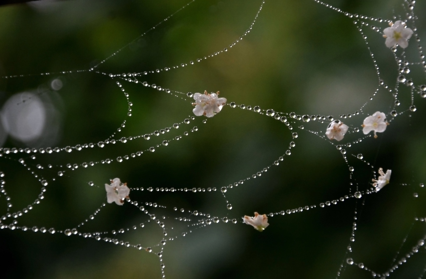 Капли росы в паутине укрылись,