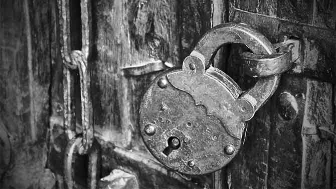 Средь камеры окован,