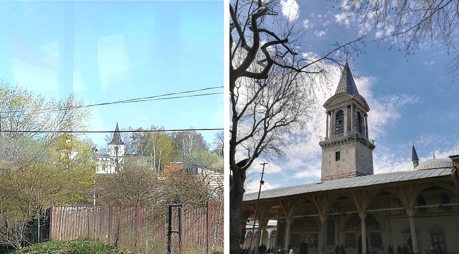 Еще одно удивительное событие даровал этот день нашей героине. Сделав фото колокольни на память, она неожиданно нашла сходство, с другой фотографией дворца Топкапы города Стамбула. Смотровая башня, с высоты которой наблюдали за казнями и помилованиями, за событиями, которые были значимы в истории. Как это возможно? Православный храм в Тарусе и Смотровая башня дворца?