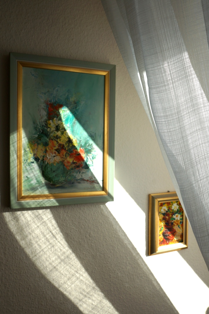 Играли с тенью на стене от занавесей в белом,
