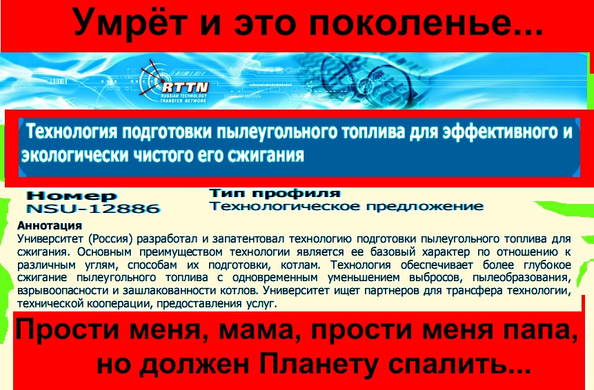 Университет (Россия) разработал и запатентовал технологию подготовки пылеугольного топлива для сжигания. Основным преимуществом технологии является ее базовый характер по отношению к различным углям, способам их подготовки, котлам. Технология обеспечивает более глубокое сжигание пылеугольного топлива с одновременным уменьшением выбросов, пылеобразования, взрывоопасности и зашлакованности котлов. Университет ищет партнеров для трансфера технологии, технической кооперации, предоставления услуг.