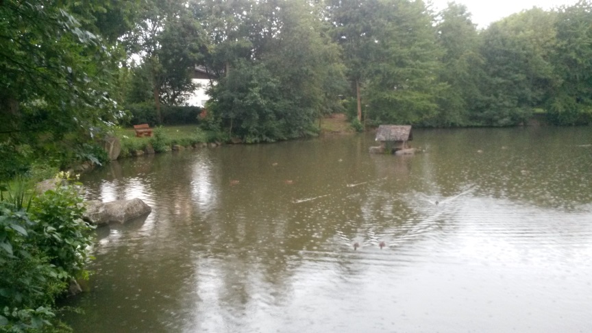 По глади молчаливого пруда;