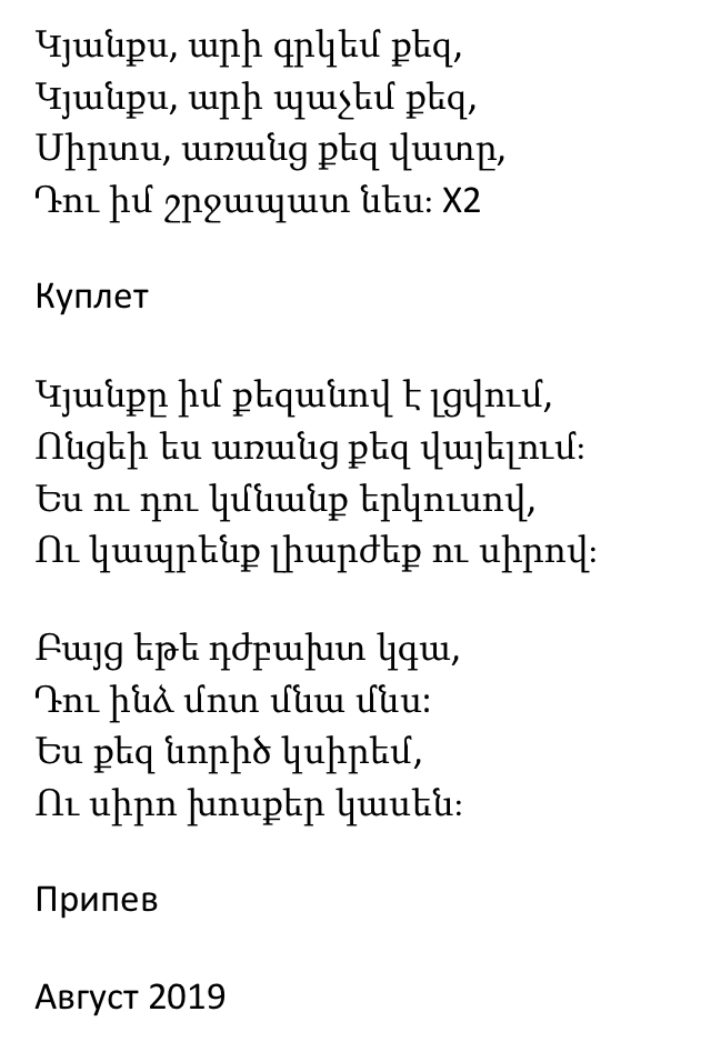 Песня на армянском языке