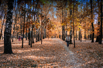 Парк согрет осенним теплом-