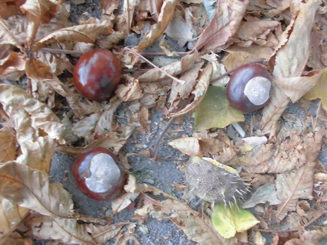 Шарики каштанов ещё блестят