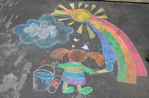 У дома тротуар расчертят дети мелом,