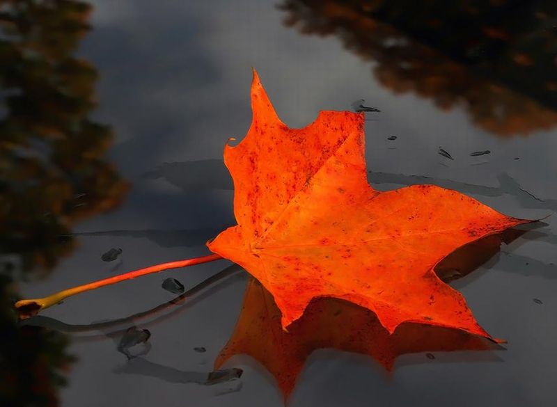 Листик в луже оказался,