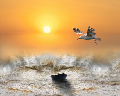 Чайка кружит над водой одиноко,