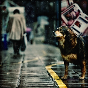 Редкий прохожий с  опущенным взглядом.