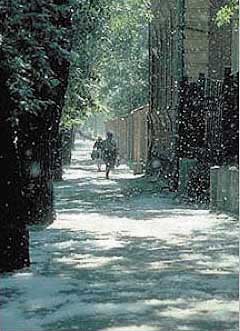 Белый пух с бульваров и домов.