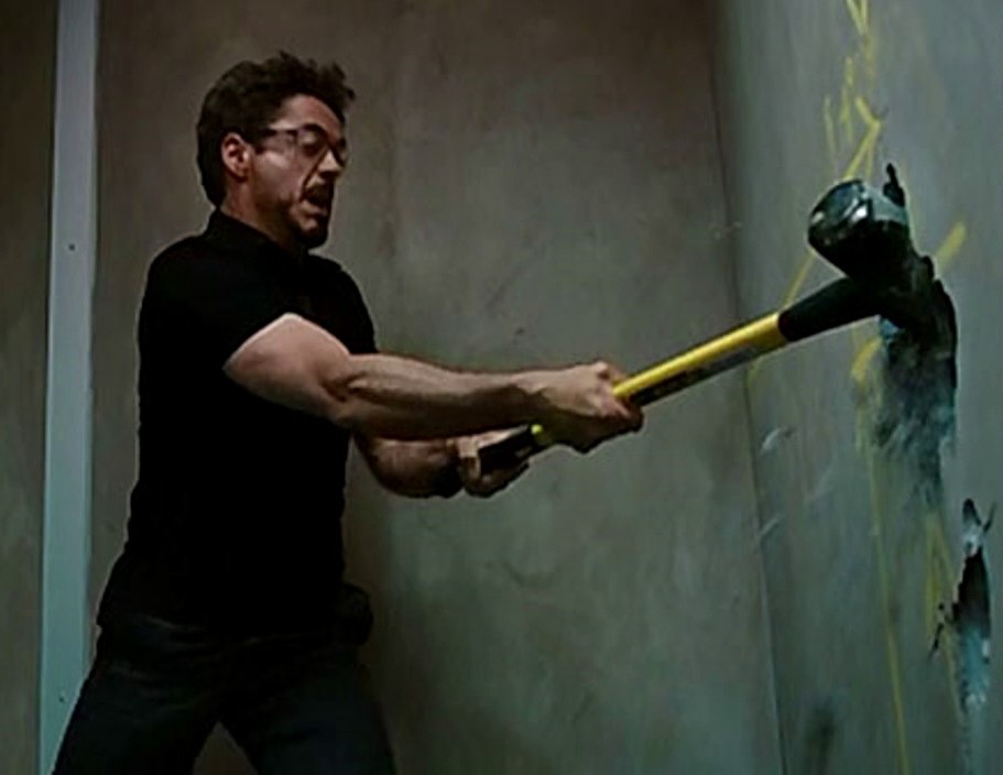 Целый день он гвозди в стены забивает молотком,