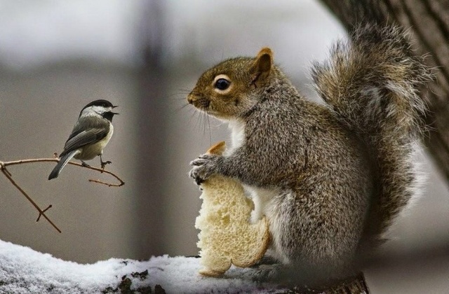 Птичку хлебом угощу –