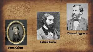 На заставке показаны три человека, с которыми y Эмили, несомненно, были секреты: Сьюзен Гилберт, Самуэл Боулз и Томас Хиггинсон.