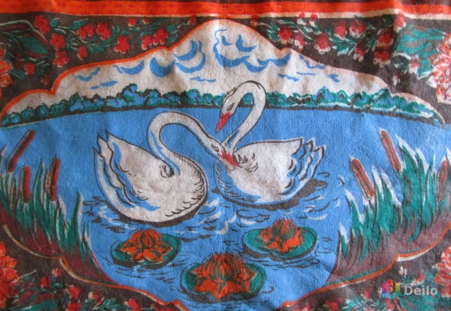 Белый лебедь на нем.