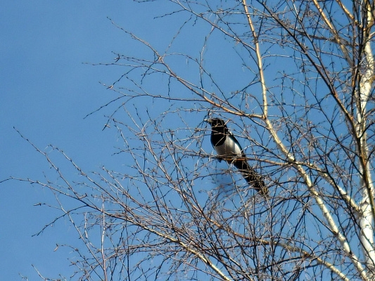 Сорока глядит на меня.