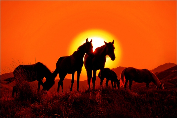 У озера пьют тихо кони