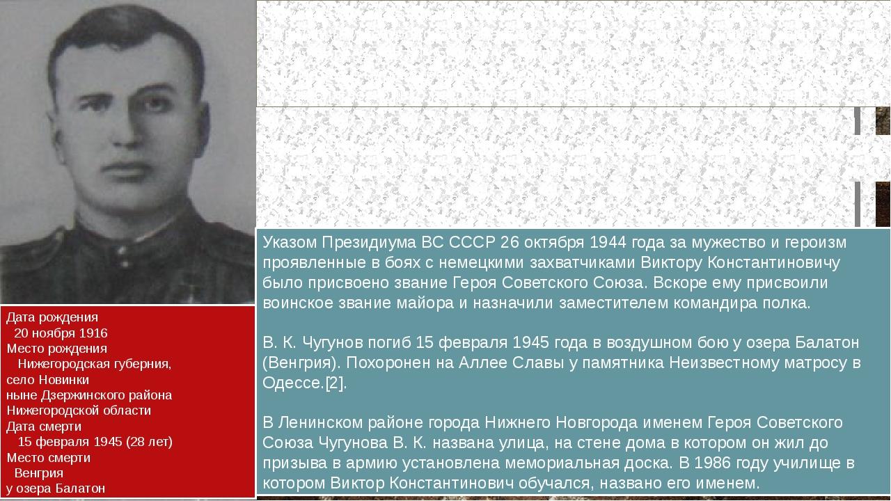 Герою лётчику - Чугунову Виктору Константиновичу