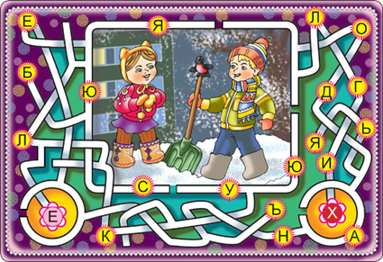 Куда убегают сугробы? Об этом знает главный герой одноимённой книжки Санька. Кто же написал эту книжку? Секрет перестанет быть тайной, если ты пройдёшь лабиринт (от розового до красного кружка).