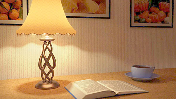 При свете лампы