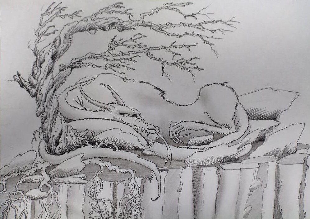 Дракон с удовольствием принюхался к закату цвета малинового щербата.