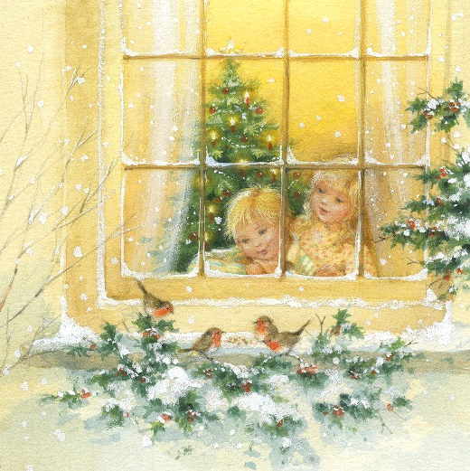 Дети с мамой у окна