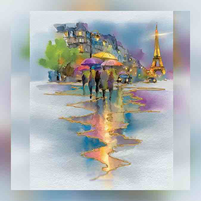 Может Парижу идёт дождь,природа вокруг в стиле импрессионизма.