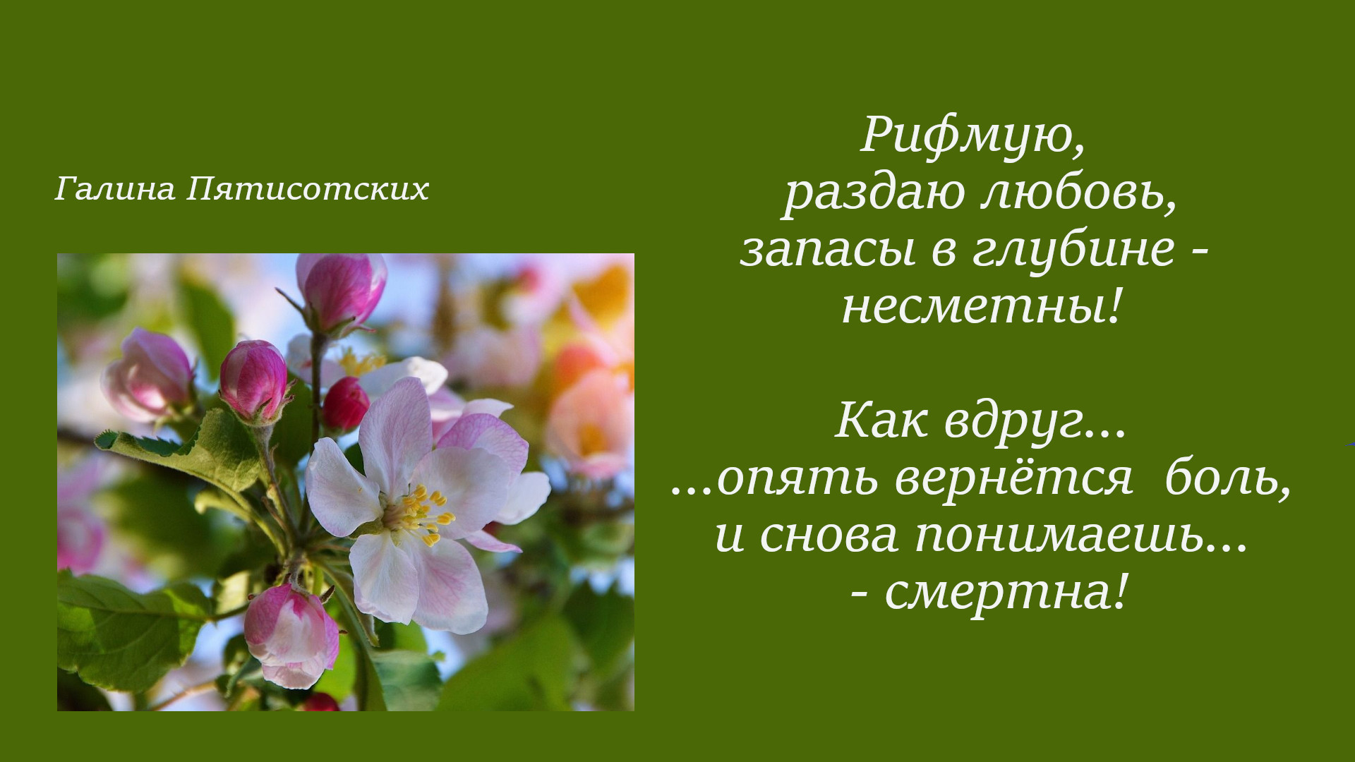 Спасибо вам, Галина за творчество, спасибо Господу за вас и за ваш яркий неповторимый талант.